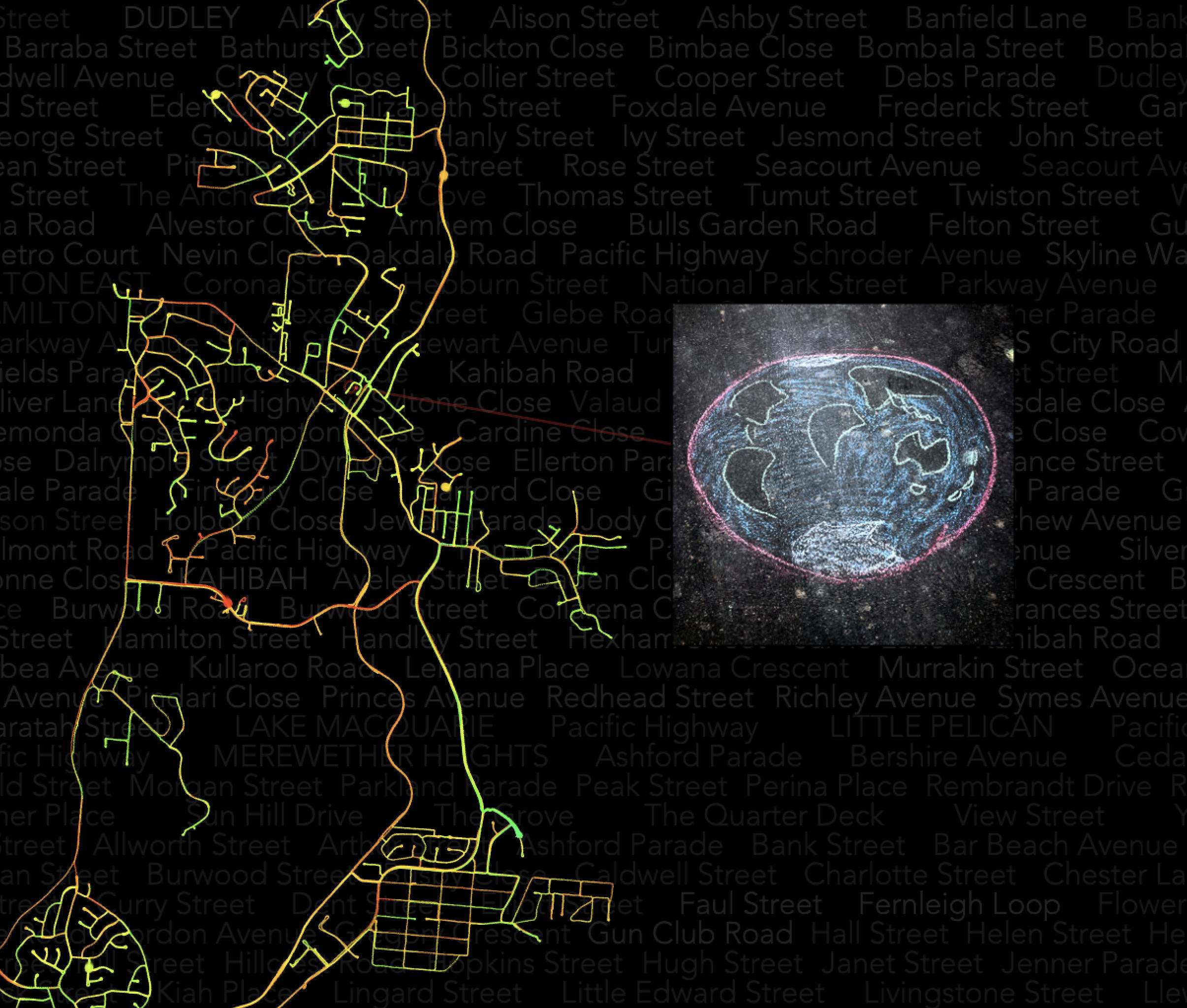 Through the March to May lock down I cycled every street from Belmont to Adamstown between the Pacific Highway and the coast. And as our life made a faltering return to normal I travelled beyond, from channel to channel – Swansea to Newcastle. A total of 840 km cycled, covering 800 streets and 32 suburbs, with 284,000 heart beats and 1 flat tyre. So far.