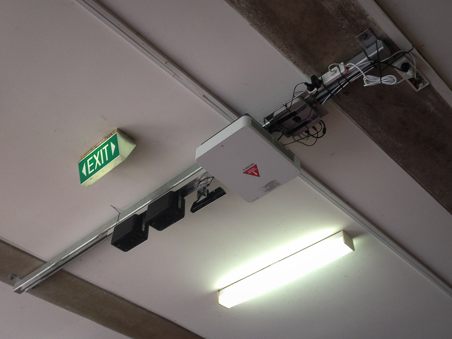 The location is extremely busy, being the intersection of two student thoroughfares and outside two main lecture theatres. There is a lot of light from an adjacent courtyard that results in a low contrast projection. A future funding proposal will seek to relocate the system to a nearby location with less light contamination.